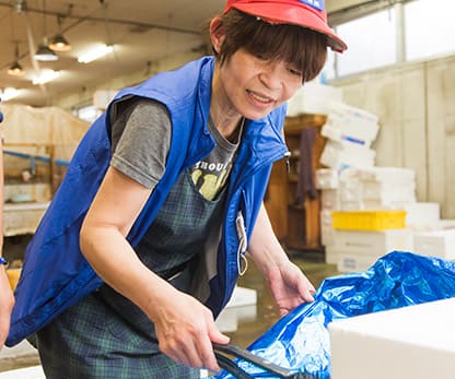 お買い求めいただいた商品は、1箱から小ロットでの郵送対応が可能です。獲れたての鮮度をそのままに、うろことりや3枚おろしなどの下処理も行っています。また、郵送中にできた傷で魚が傷まないようにするために、梱包も独自の製法で徹底管理。その他のご要望にも出来る限りお応えいたしますので、まずは気軽にご相談ください。