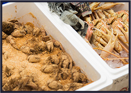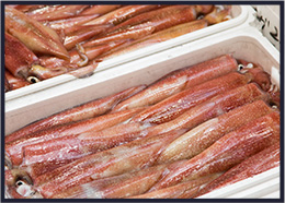 一夜干しなどの干物類のみならず、あん肝や蟹味噌などの加工品も豊富にございます。 特に飲食店では様々な逸品に活用できるとあって、大変ご好評いただいています。
